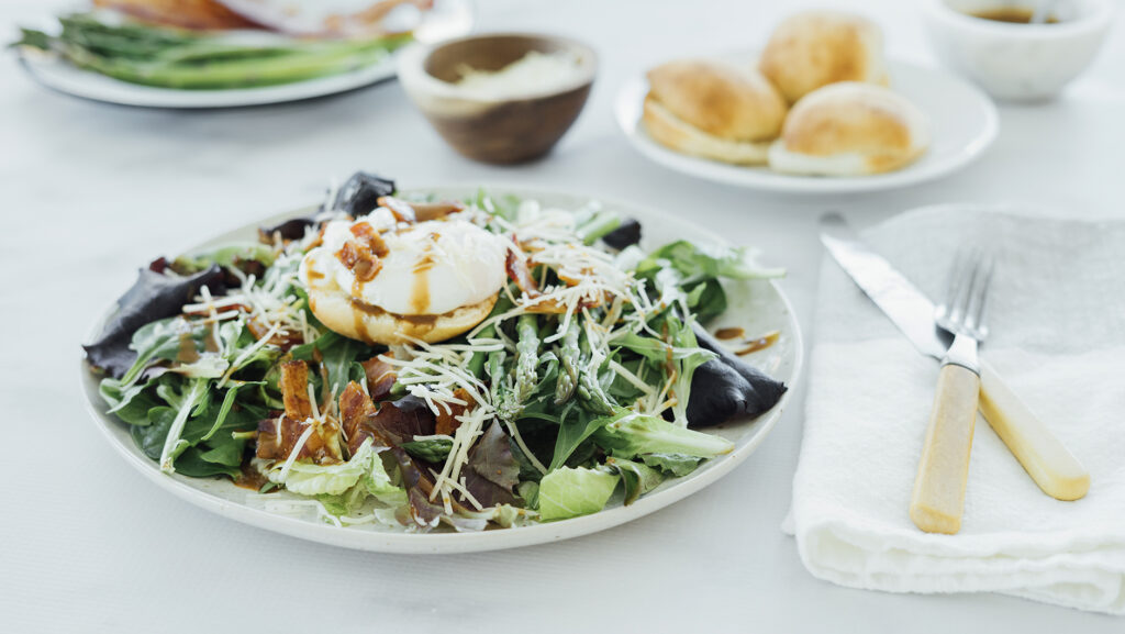 Poached eggs are not only the star of eggs Benedict, they’re also great with steamed vegetables for a light meal.