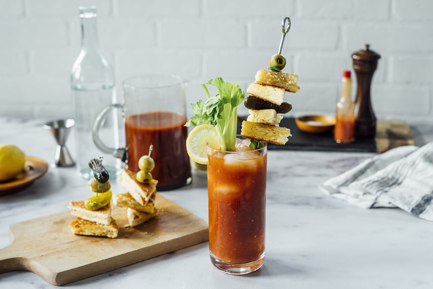 Grilled cheese and tomato soup are a winning combo, and the same principle applies to tomato-based cocktails. Pick your favorite grilled cheese recipe, make a few sandwiches and then cut them into small pieces to hang on the edge of your bloody mary glass.
