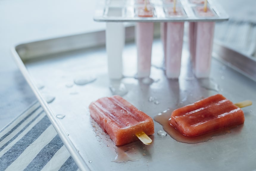 Such an easy refreshing treat: Put about a pound of fresh watermelon cubes into a blender with one or two tablespoons of sugar, maple syrup or another sweetener. Add in a few ounces of orange or lime juice and then blitz until liquified (you may need to add more juice or water to get it to a liquid consistency). Pour into popsicle molds and freeze until solid.