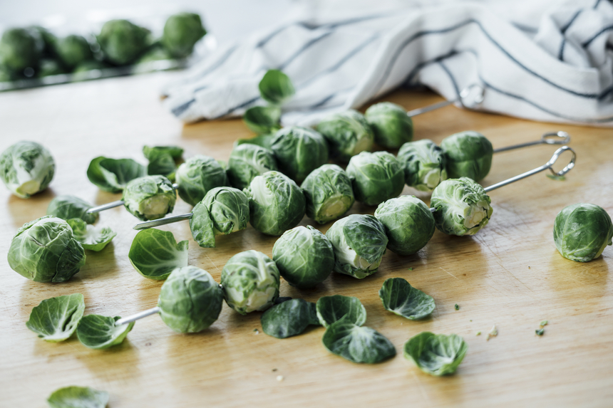 - Put down a layer of aluminum foil over the grates of the grill so that none of the sprouts fall through. You can also thread them onto grilling skewers.