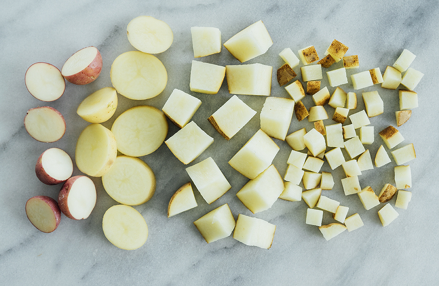 Step 3: Dice, cube, or cut the potato into wedges or rounds, or keep it whole depending on the recipe.