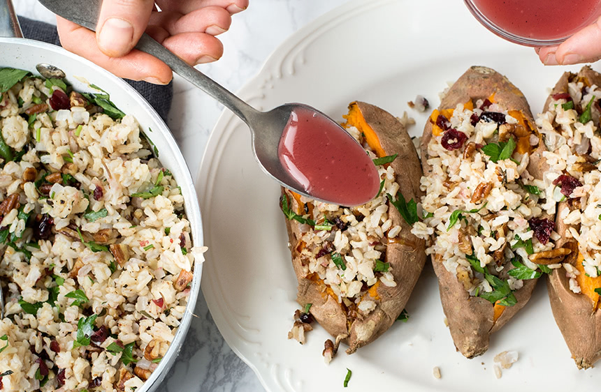 - Fill the potato with warm rice pilaf, pecans, and dried cranberries for a hearty main dish.