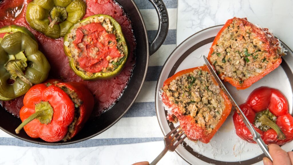 Suggestions: Red peppers last in a plastic bag in the fridge up to one week and can be eaten raw or cooked. Try this red pepper recipe: